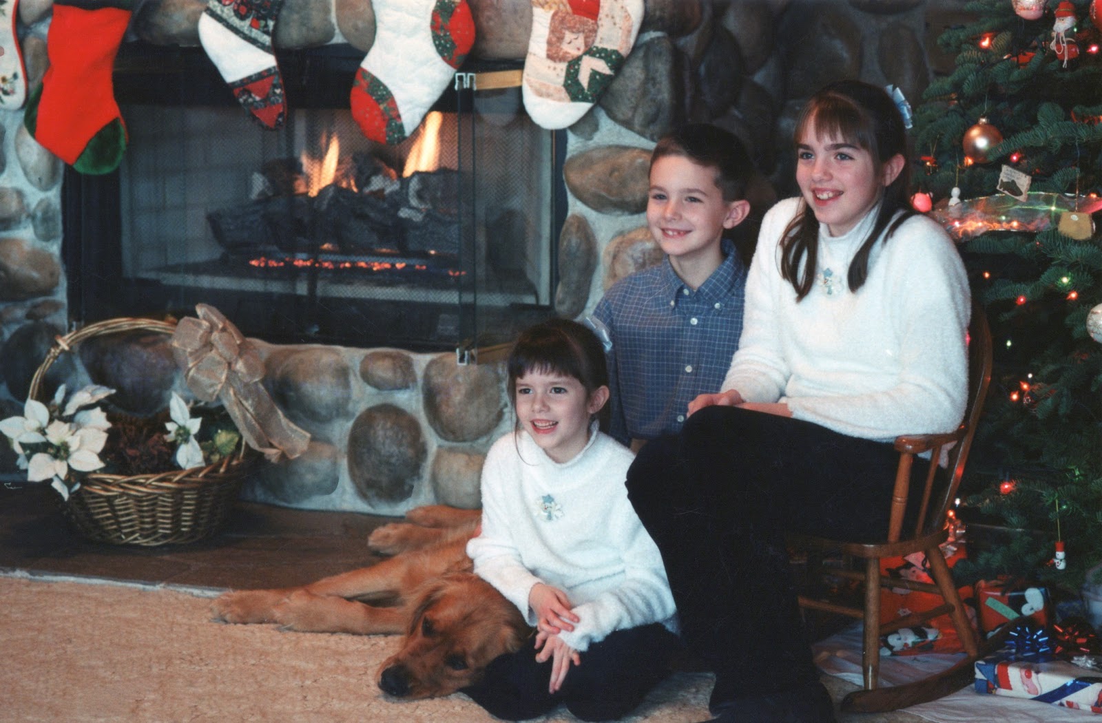 I am missing you two terribly right about now. We are getting ready to open presents, and since I've only ever spent Christmas with the five us, there is a big Jenny-shaped hole, and a big Jonny-shaped hole in my heart. I miss being able to hug you guys; I miss having spanking wars with Jenny and exhausting laughing parties in the car with Jonathan; I miss plotting and carrying out stocking ideas for Mom and Dad, and then getting up really early Christmas morning to gather our stockings and then run down the hall to their bedroom to open them together. I miss watching Christmas movies, all squished together on the couch. I miss putting up the nativity together.